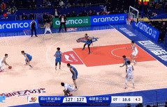 关键一击!曾凌炫接到黎伊扬传球 迎着防守人命中三分取得领先!